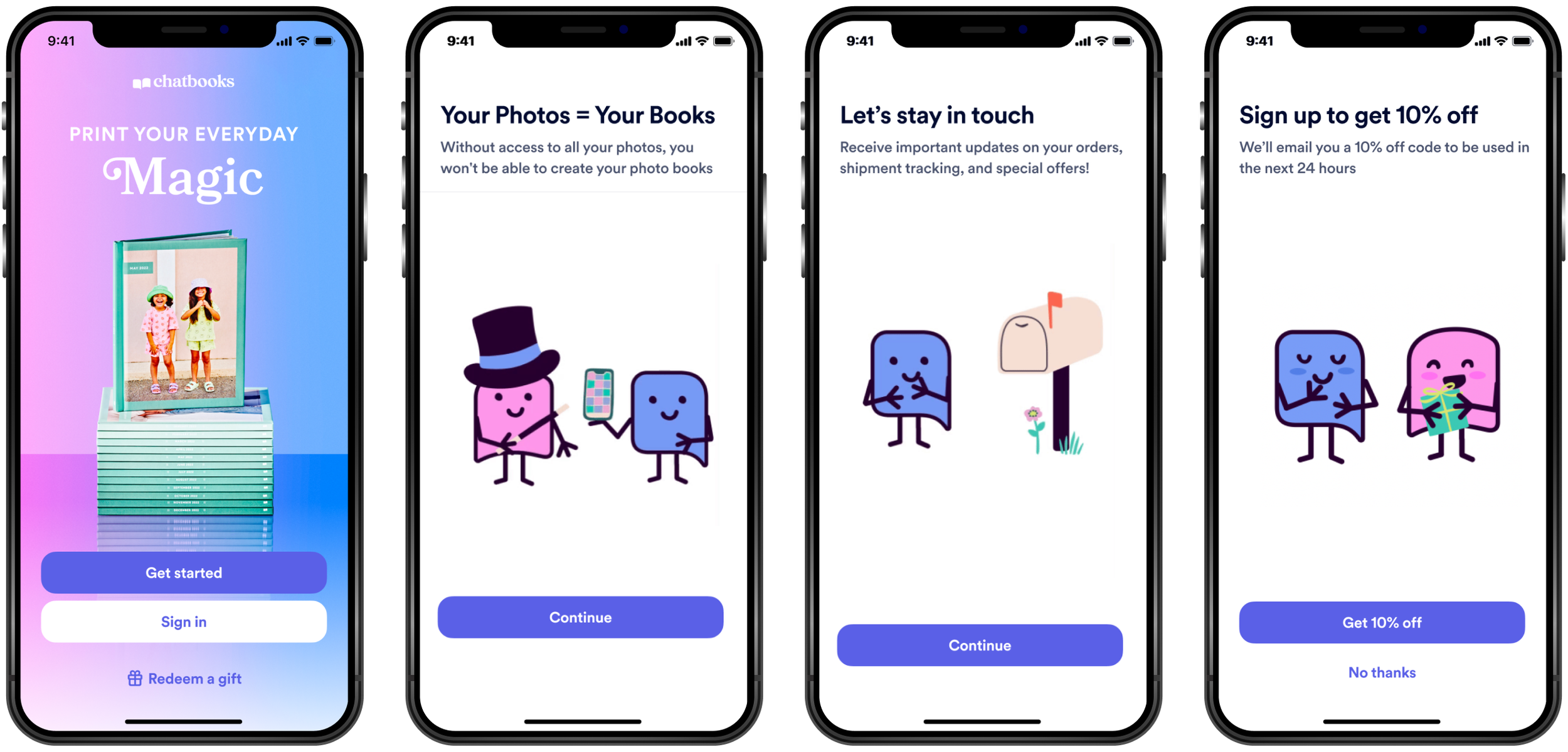 I moved Permission screens to contextual moments (e.g., photo access requested when users add photos, notifications when starting a subscription).